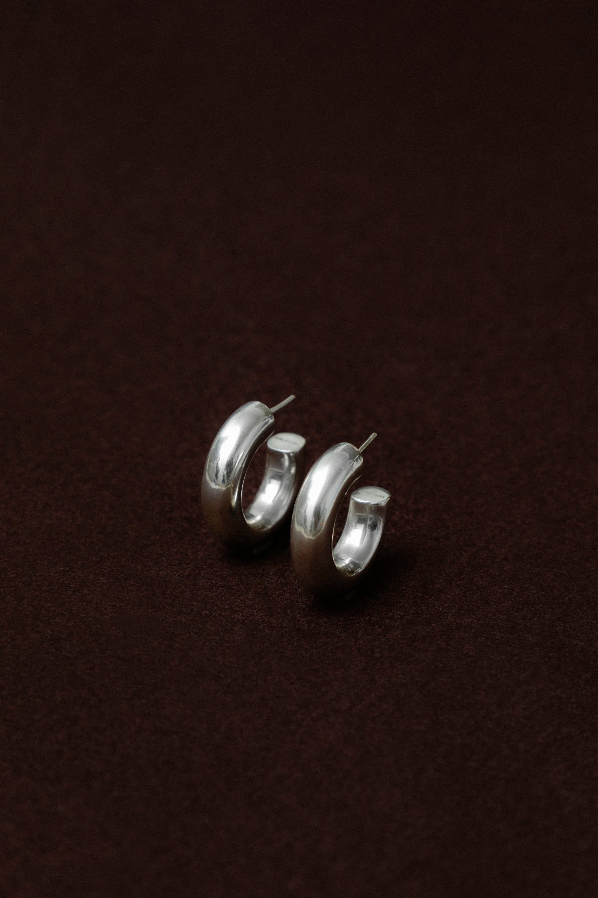 A nossa argola inflada é de prata 925 e toda feita à mão. Ela é oca e muito leve, o que proporciona um conforto extra para o uso no dia a dia. A criação da peça foi pensada para ser clássica e robusta, um design limpo e atemporal.