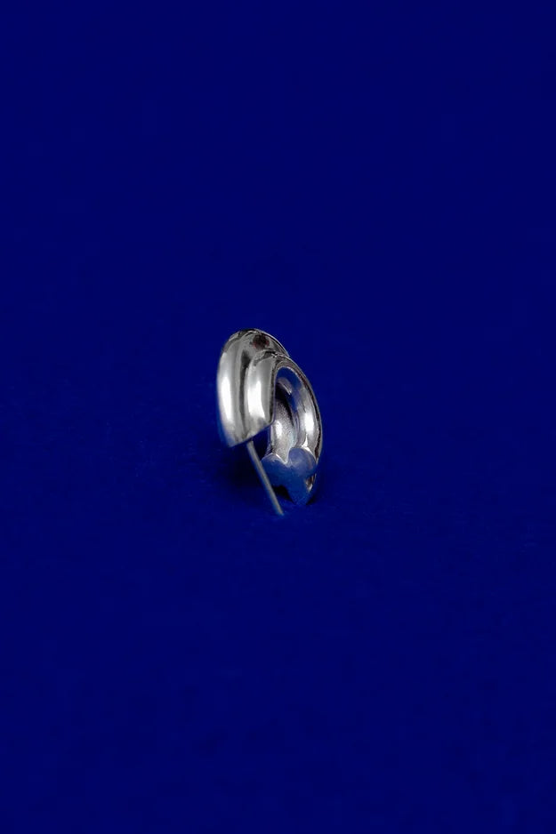 Vendidas em pares, as argolas paus grande em prata são feitas em prata 925 e fazem parte da coleção Triunfo. Cada argola é desenhada a partir dos naipes do perfil do naipe paus meticulosamente dando origem a um perfil tridimensional. Um dos detalhes da coleção é que o design do naipe se revela quando visto de cima revelando o que está em jogo.