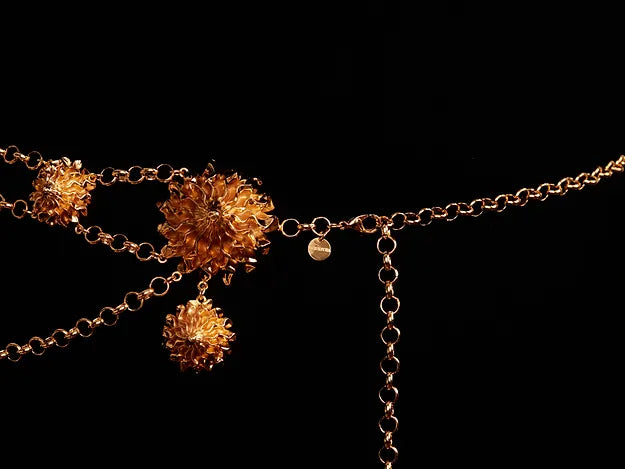 A peça mais icônica e complexa da coleção SUSPIRO. Em sua criação fizemos uma releitura de montagens tradicionais de joias da era medieval. Composta por quatro diferentes tipos de suspiro, todos presos por elos e com correntes como elementos estéticos. A peça conta com fecho de corrente, permitindo diversos ajustes e foi criada para ser usada mais próxima ao corpo - quanto mais justo, mais elegante é a proposta.