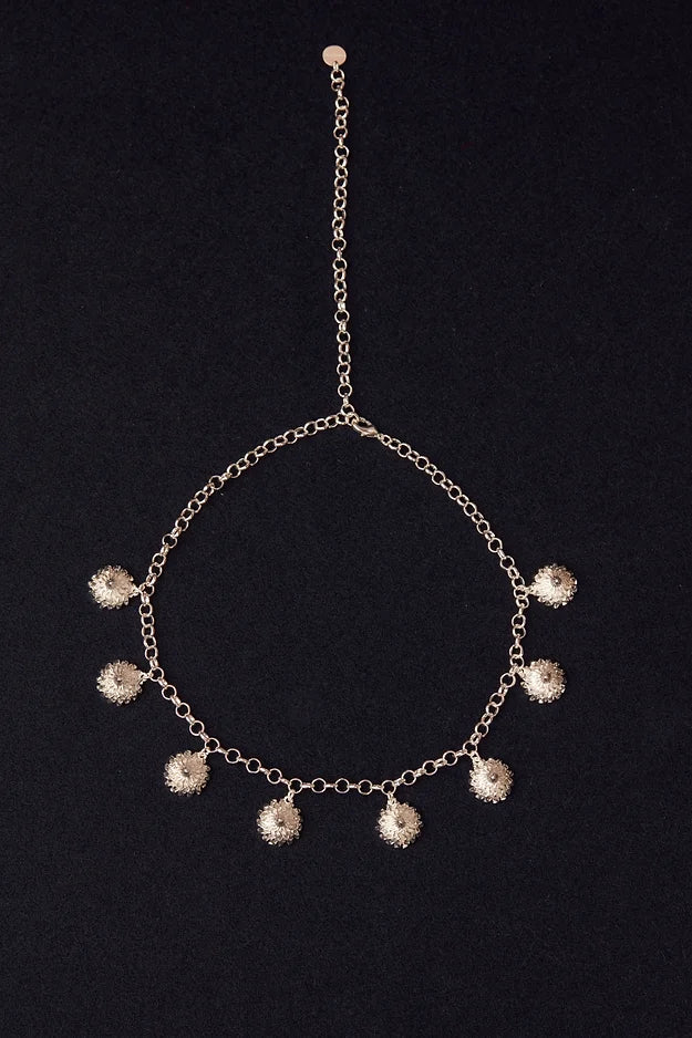 A base desta peça que integra a coleção SUSPIRO é latão com banho de prata 925 e toda feita à mão. O colar é delicado e composto por oito pingentes de suspiros presos por elos. Com fecho de corrente, a peça permite diversos ajustes podendo ser usada próxima ao corpo ou como for mais confortável. Atemporal, a peça foi criada a partir de um tamanho pensado para todas as idades.
