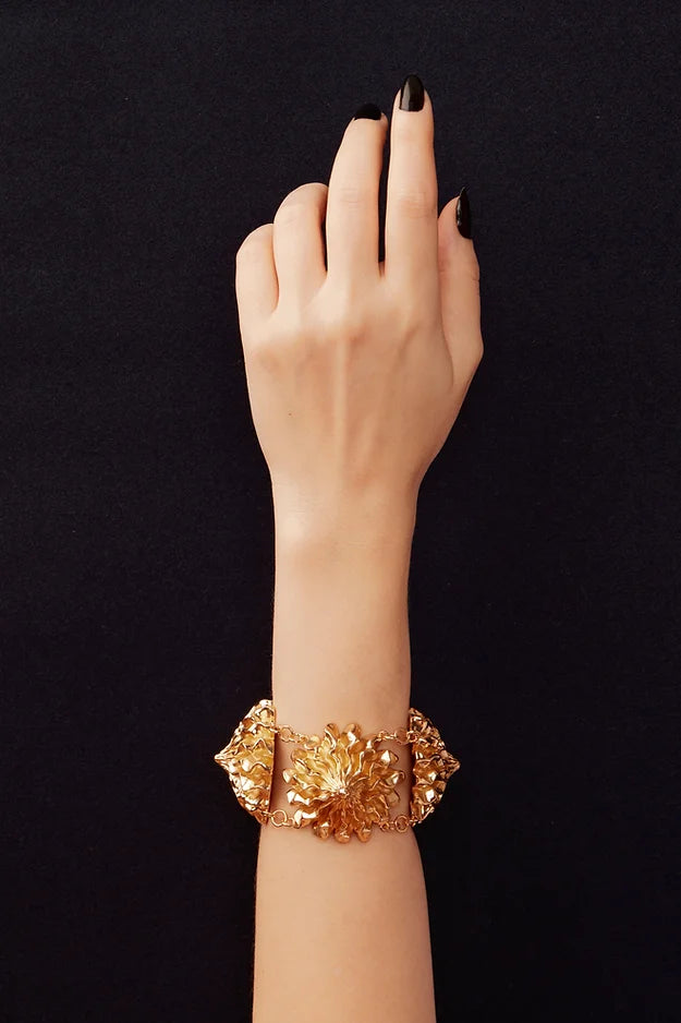 Peça da coleção SUSPIRO, criada a partir da composição de três suspiros. Toda peça é feita à mão em latão com banho em ouro 18k, propondo uma sutileza complexa de detalhes que se revelam a partir dos acabamentos foscos e brilhantes na mesma peça. Em nossa peça escultural, o suspiro toma forma e se converge em um ponto central a partir das laterais, que possuem um efeito rajado.