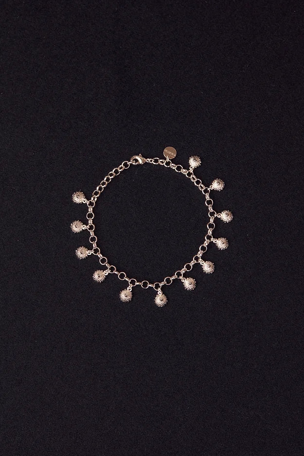 Tornozeleira Sarina é a única tornozeleira da coleção SUSPIRO – e a primeira criada pela Struktura – e toda criada a partir da composição de doze suspiros todos presos por elos sequenciais. Toda peça é feita à mão em latão com banho em prata 925, propondo uma sutileza complexa de detalhes que se revelam a partir dos acabamentos foscos e brilhantes na mesma peça.